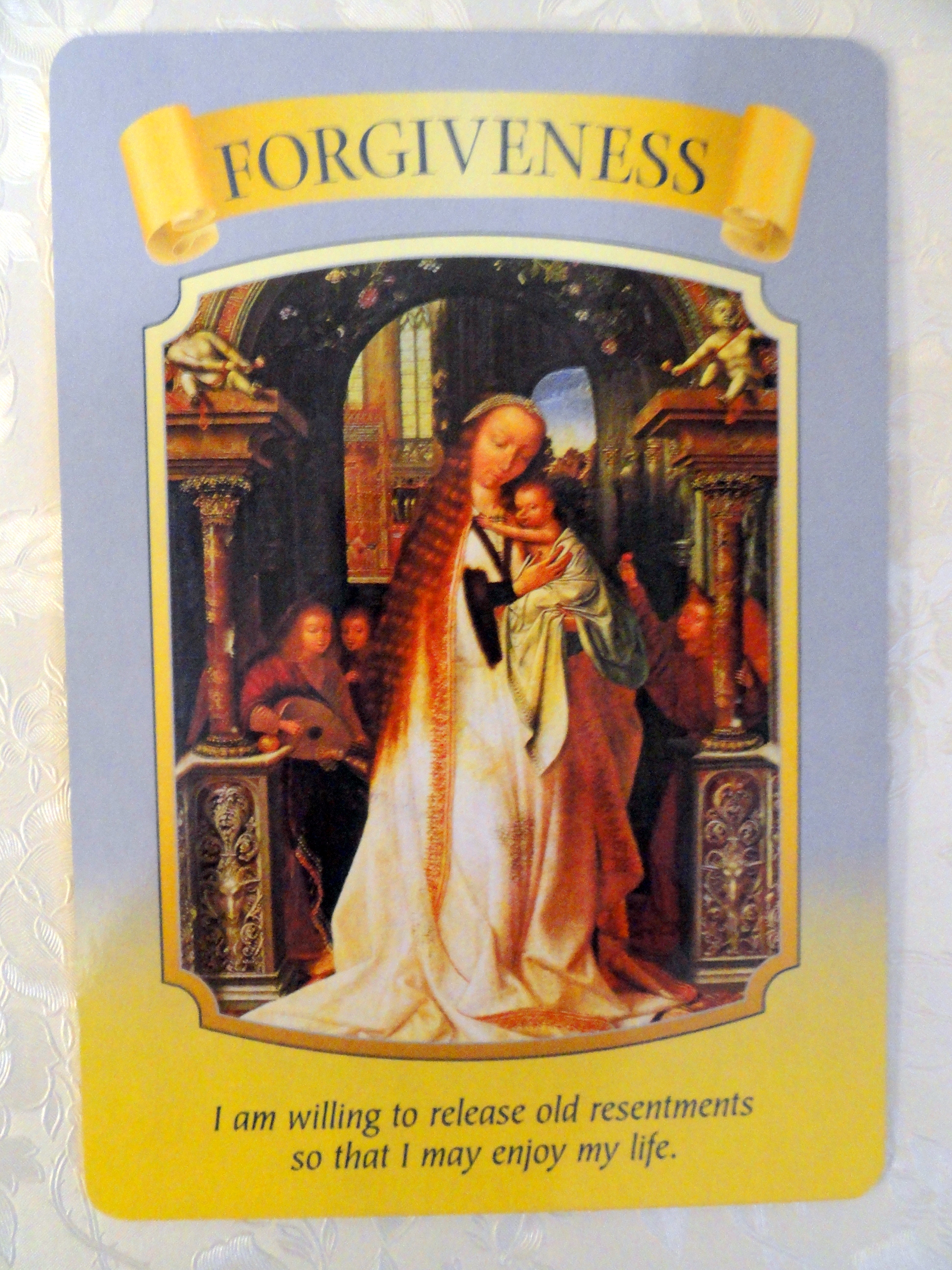 Mother mary, from the ascended masters oracle card deck, by doreen virtue, ph.d. The cards have soothing and illuminating illustrations, designed to offer affirmations and practical healing. 24/12/2014 · daily angel oracle card: You have drawn this card because you need to nurture yourself. Mother mary oracle 44 illustrated cards. Through the guiding wisdom of this oracle, she helps you connect with knowledge of your own spiritual potency and divinity so that you may experience peace and love in your life. This moving and powerful deck explores the profoundly healing, protective and soothing energy of mother mary. Through this oracle, she brings you her guidance and wisdom and connects you with knowledge of your own spiritual potency and divinity so that you may experience ever greater peace and love on your life journey.